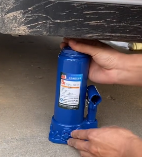 如果觉得直接用立式油压千斤顶顶升汽车没有把握,可以先借用其他的重物当练习工具。