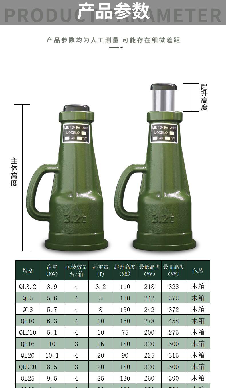 螺旋千斤顶能长期顶升重物,其结构紧凑,合理地利用摇杆的摆动,使小齿轮转动,经一对圆锥齿轮运转,带动螺杆旋转,推动升降套筒,从而使重物上升或下降。