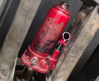 在维修时还会碰到,主轴中心抓刀系统,在上面无法抽出来时,因为时间久了,里面也会生锈,或者其它杂质卡住,太紧的时候,也要用到液压千斤顶,放在操作平台上,用一只长短粗细适合的钢管,从下面把抓刀系统强制性的朝上顶出来。