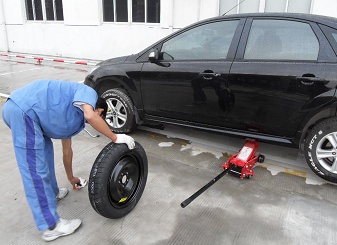 冠航给出的建议是在使用千斤顶将车辆顶升起之后,在车底垫上一个轮胎或其它高度足够的物件,这样即便是在作业的过程中千斤顶发生了倾倒,汽车下坠仍有轮胎作为支撑,从而有效的保证作业者的安全。