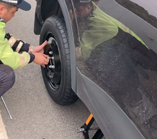人民群众生命财产安全,交警用一言一行践行“我为群众办实事”的准则,车辆出现故障刻不容缓,机械千斤顶用自己的千钧之力顶升起车辆,协助交警、车主更换轮胎,解决了车主的燃眉之急。