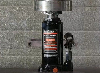 测试方式采用的液压机对千斤顶进行不断的加压,利用液压机加压至千斤顶完全报废为结束,整个过程中的最高压力值则为评测结果,首先出场的是印度千斤顶,但是千斤顶的表现并不是很好,仅仅在加压至两吨左右的时候千斤顶就完全断裂,并弹出了。不过印度小伙依然表示这个强度足以战胜中国的千斤顶,不过打脸很快到来了。