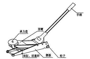 第三、卧式千斤顶的组成零部件中有油泵、工作油缸、顶举臂、承力盘、手柄、侧板、轮子等,尤其是轮子优势明显,使用时操作人员只需要握住手柄,借助四只轮子将千斤顶推入车下,就能利用液压系统顶升承力盘,顶起重物。