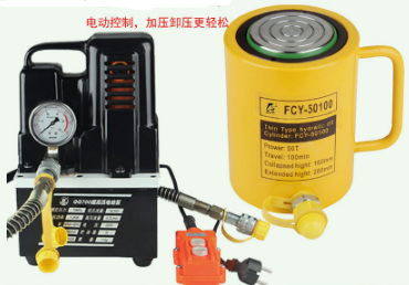 液压千斤顶的出现让我们的重物顶升工作变得轻松高效,但是面对大吨位重物及高行程重物时,人力需要不停的按动液压千斤顶的手柄,期间需要耗费大量的体力和时间,工作效率低,很难满足施工现场对液压千斤顶的顶升要求,因此继手动液压千斤顶后,人们又发明了电动液压千斤顶。